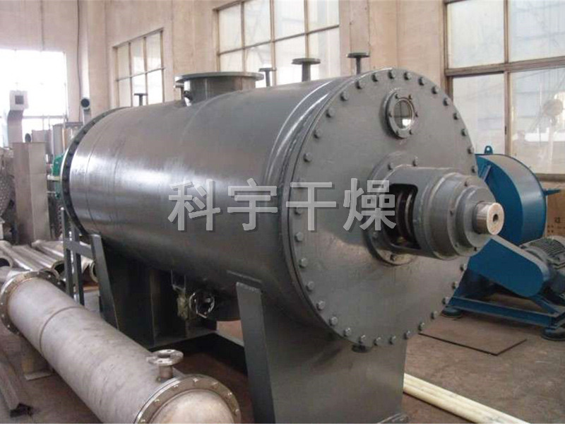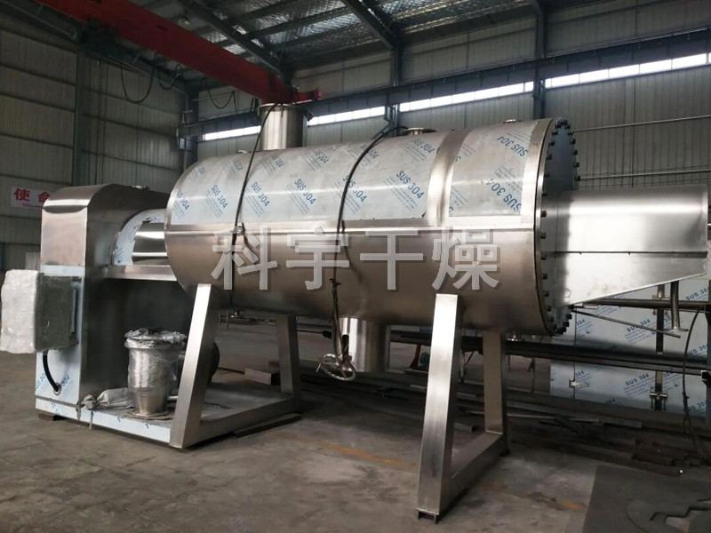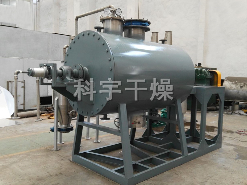 本機(jī)是一種新穎臥式間歇式真空干燥設(shè)備,濕物料經(jīng)傳導(dǎo)蒸發(fā),帶有刮板攪拌器不斷清除熱面上的物料,并在容器內(nèi)推移形成循環(huán)流,水份蒸發(fā)后由真空泵抽出。