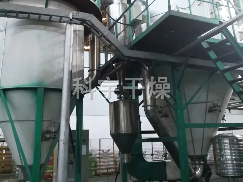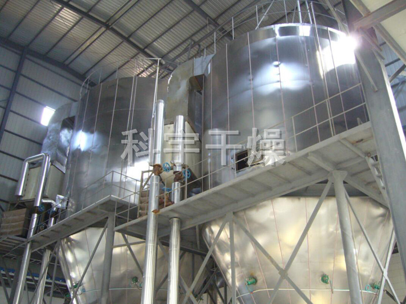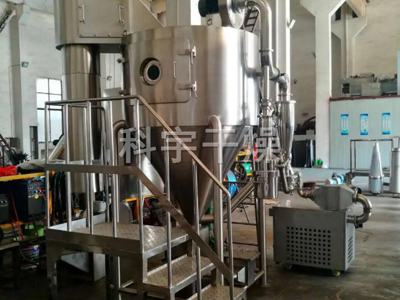 該機采用全封閉形式,所有部件均采用不銹鋼制造,配有三級凈化裝置,過濾后的空氣達十萬級要求。筒體與頂部裝有冷壁裝置,使壁溫<80℃,干燥塔內(nèi)裝有氣刷掃塔裝置。經(jīng)該機干燥后的中藥浸膏粉,不會出現(xiàn)焦化變質(zhì)現(xiàn)象,大大增加了收粉率(95%以上),而且不會產(chǎn)生混藥現(xiàn)象和粘壁現(xiàn)象。
